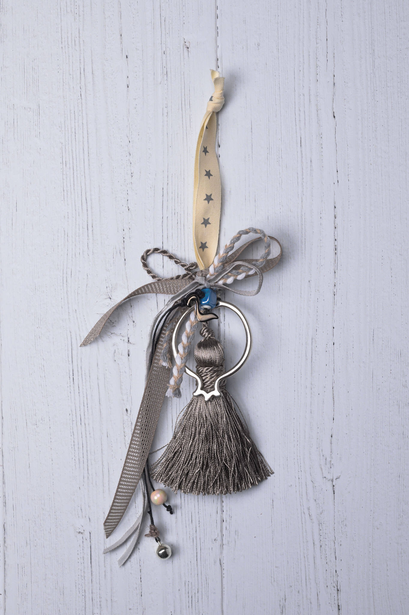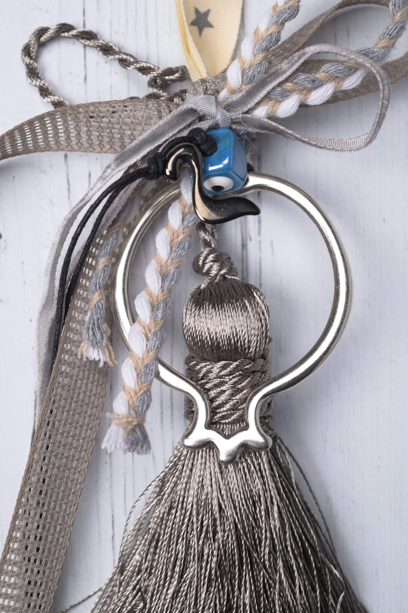 Επιλέξτε για τα φετινά Χριστούγεννα ένα όμορφο γούρι με μεταλλικό ρόδι. Σε γκρι αποχρώσεις, με όμορφα συνδυασμένες κορδέλες και βαμβακερή φούντα. Ιδανικό για δώρο προς τα αγαπημένα σας πρόσωπα, γεμάτο ευχές για την καινούρια χρονιά ή για απλή διακόσμηση..