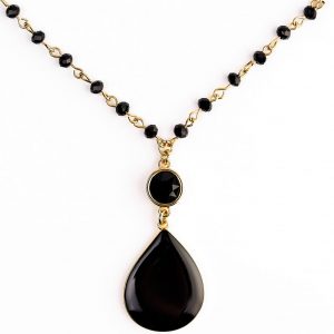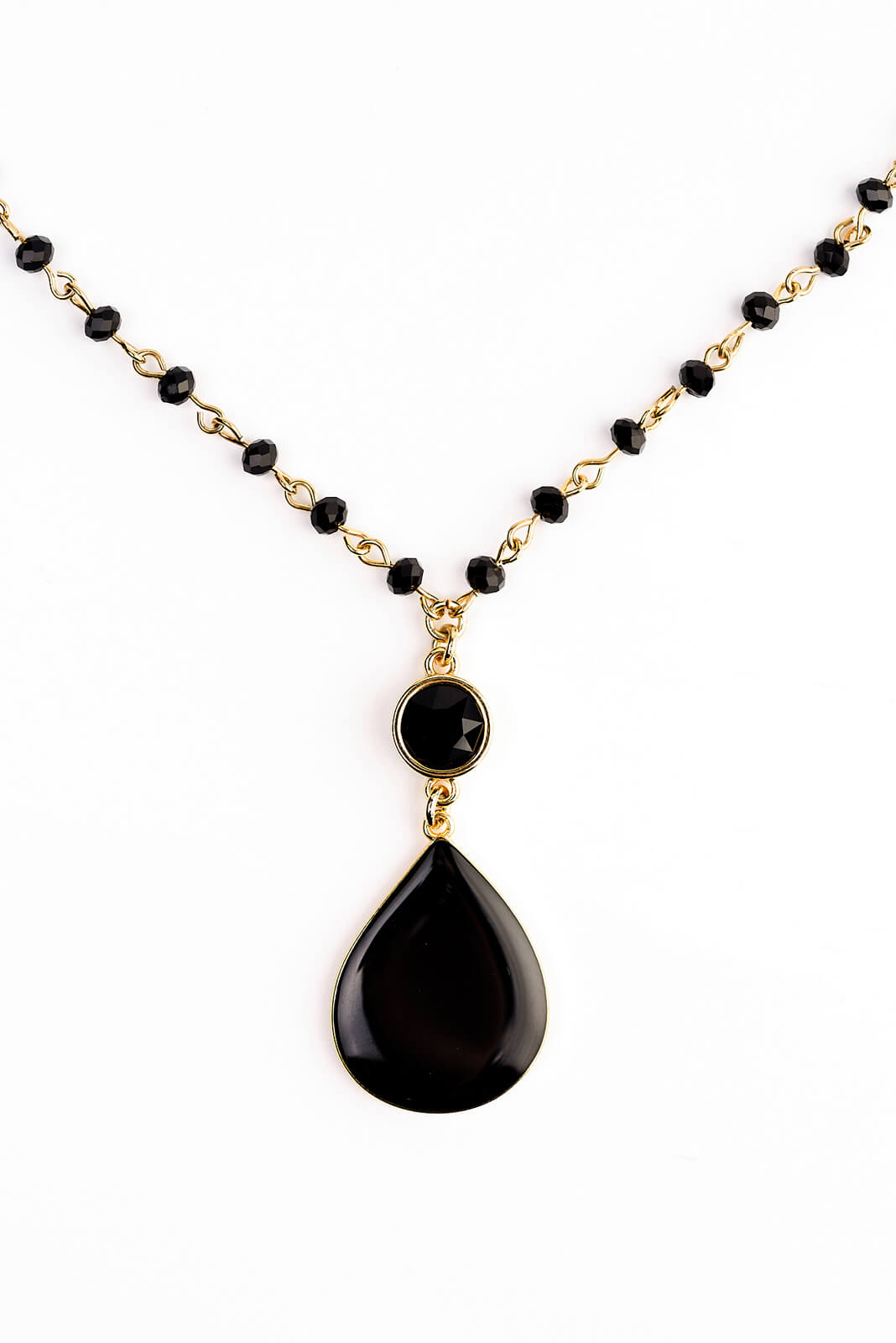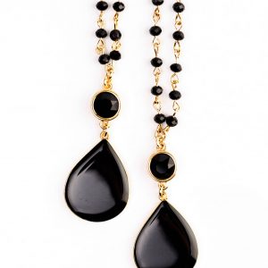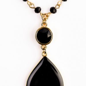 Μακρύ κολιέ ροζάριο με Swarovski και σταγόνα.