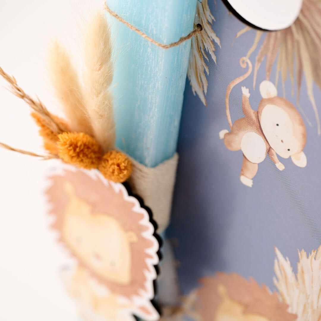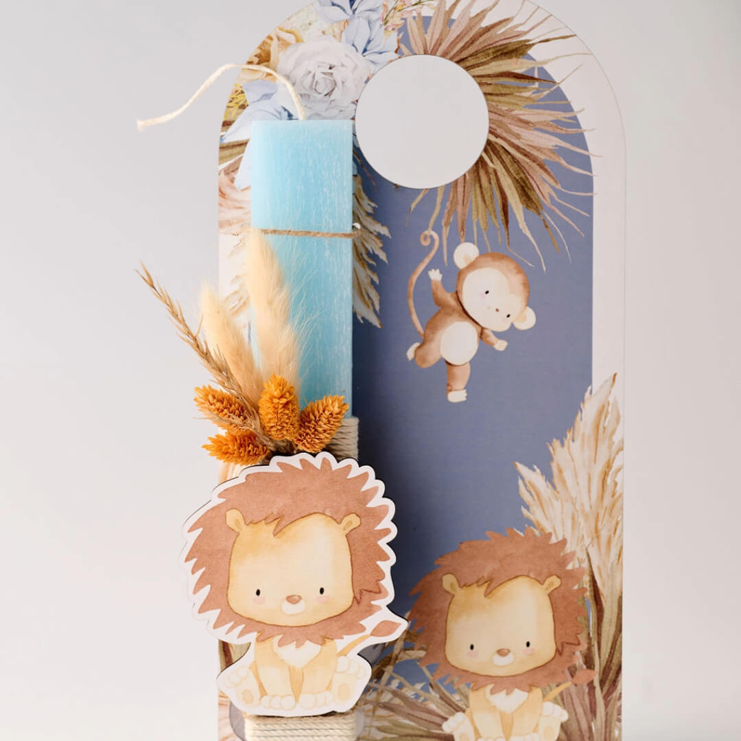 Πασχαλινή λαμπάδα με ξύλινο λιονταράκι & διακοσμητική πλάτη