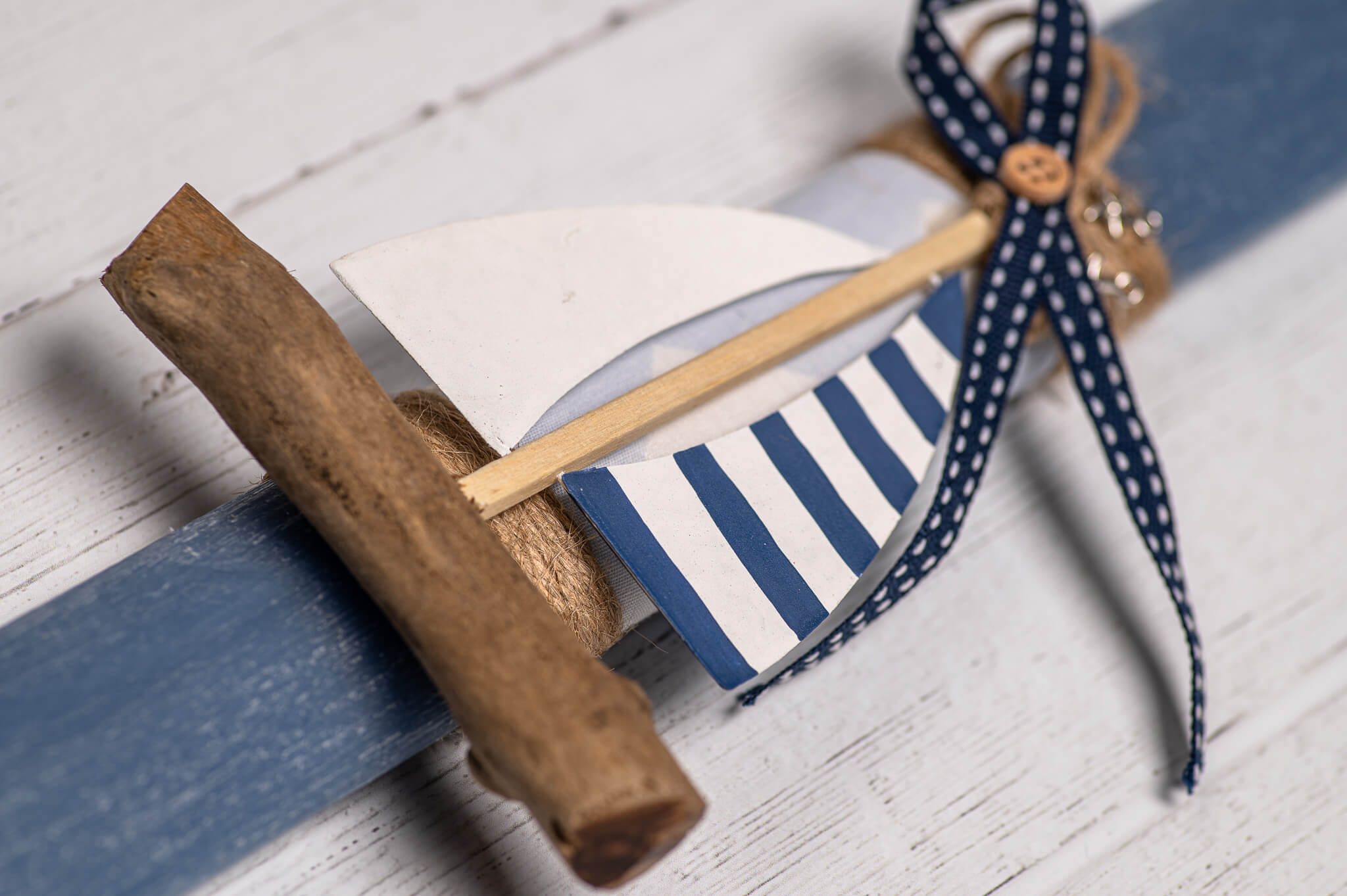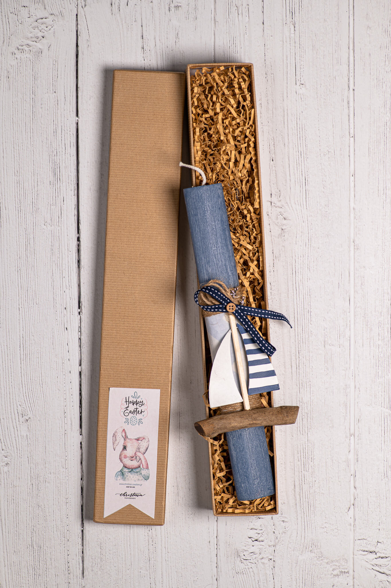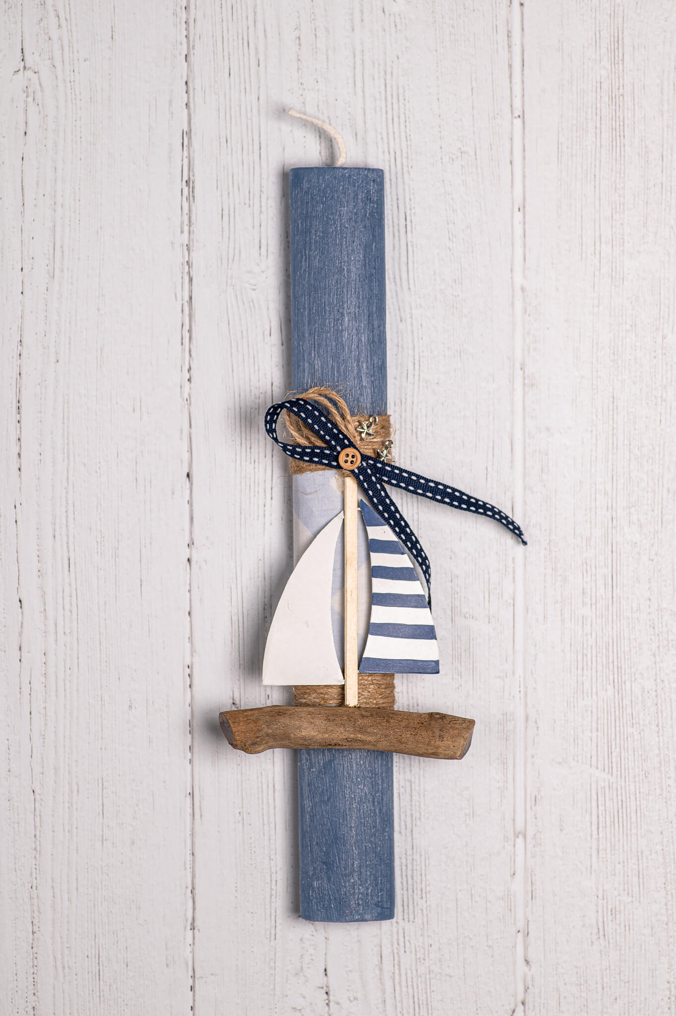 Χειροποίητη πασχαλινή λαμπάδα με ξύλινο διακοσμητικό καράβι & αρωματικό κερί.