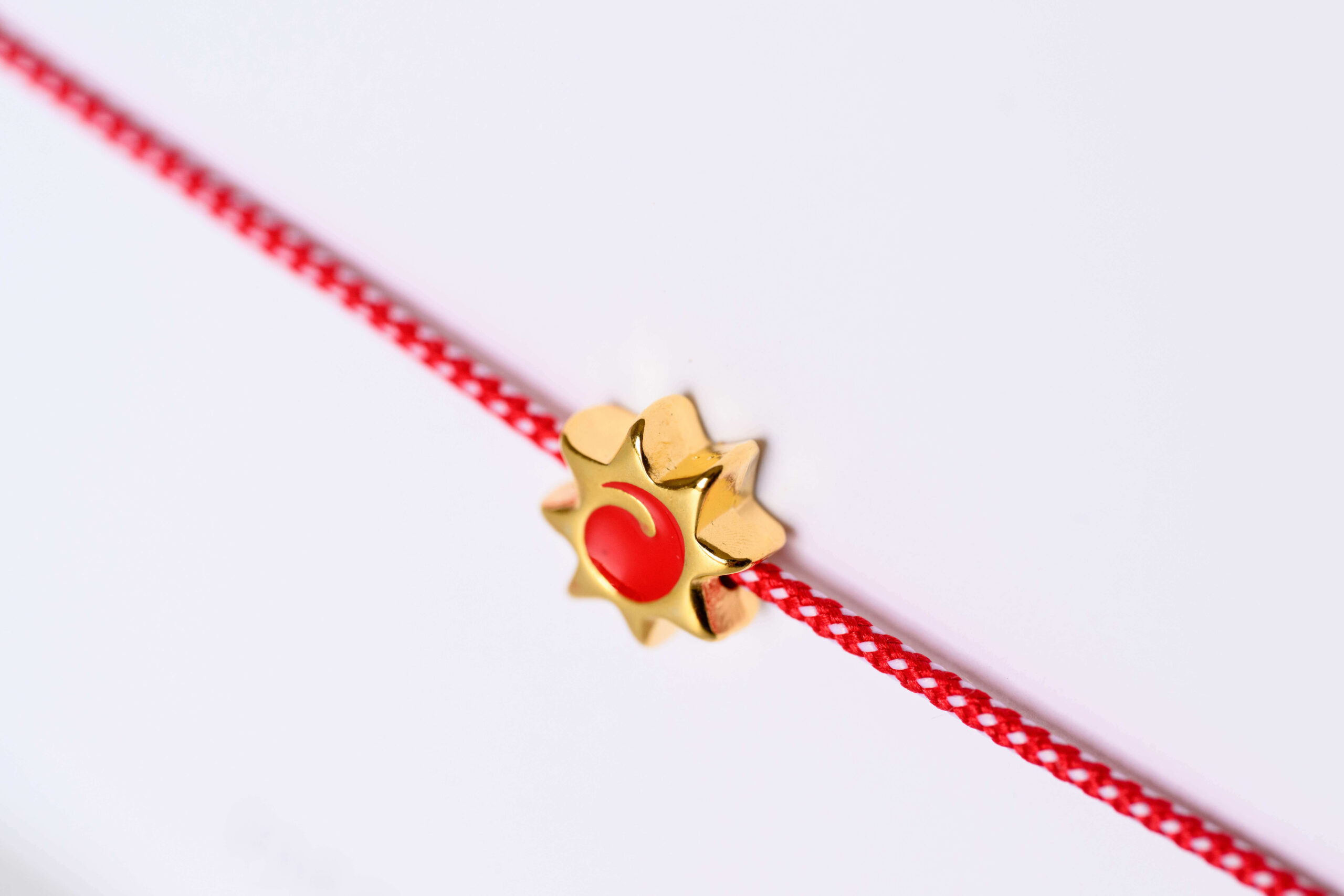 Φτιαγμένο απο βαμβακερό κορδόνι & μια ιδιαίτερη μεταλλική χάντρα στο σχήμα του ήλιου.