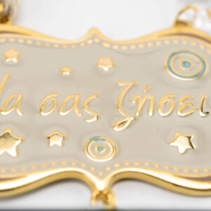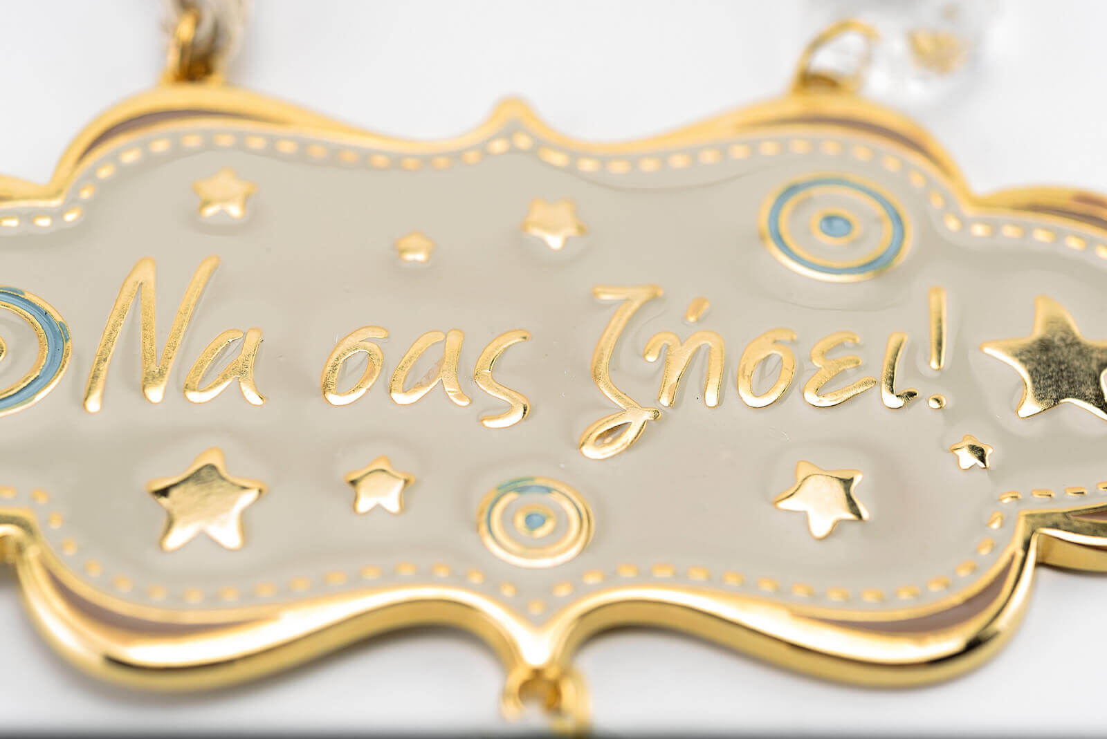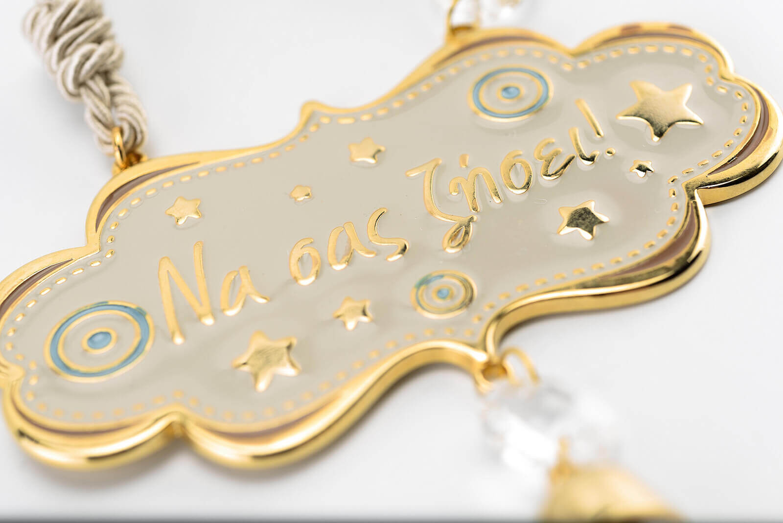 Επιλέξτε να χαρίσετε το πιο όμορφο γούρι – φυλαχτό στο νεογέννητο μωράκι! Με ένα ιδιαίτερο στοιχείο απο σμάλτο, σατέν κορδόνι, βαμβακερή φούντα και χαραγμένη την ευχή “Να σας ζήσει “. Ένα πολύ όμορφο και καλόγουστο δώρο που σίγουρα δεν θα περάσει απαρατήρητο!!
