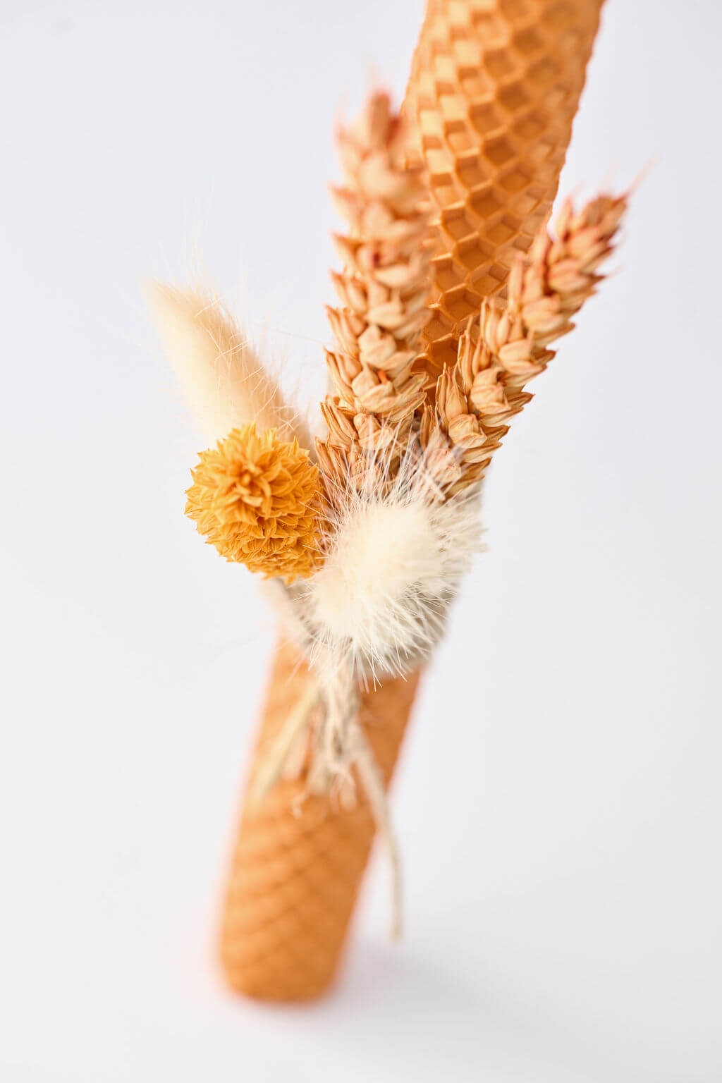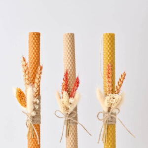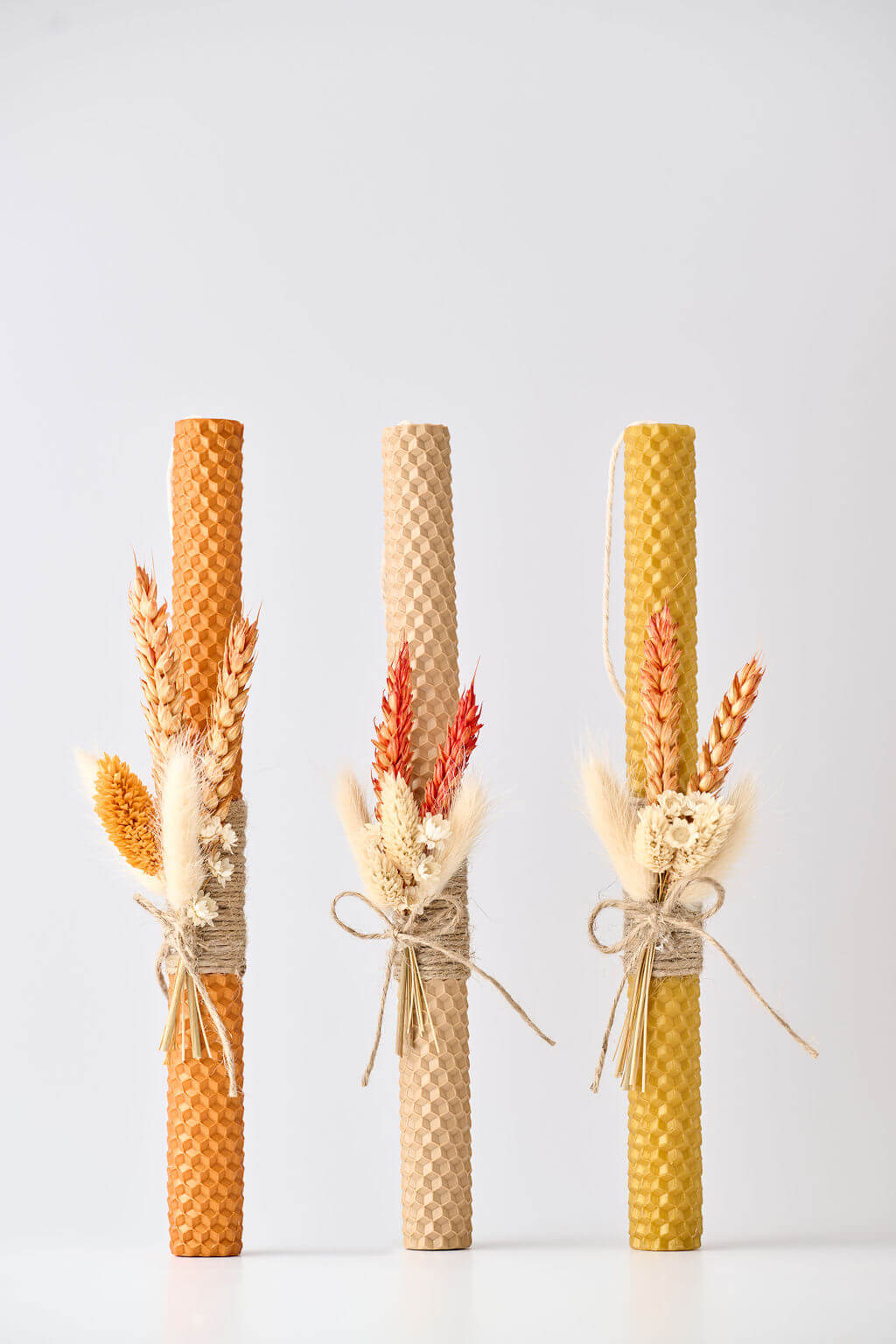 Για το φετινό Πάσχα επιλέξτε για δώρο ή για εσάς τους ίδιους μια χειροποίητη πασχαλινή λαμπάδα απο αγνό κερί μέλισσας στο χρώμα του χαλκού διακοσμημένη με αποξηραμένα λουλούδια. Μια επιλογή που δεν θα περάσει απαρατήρητη!