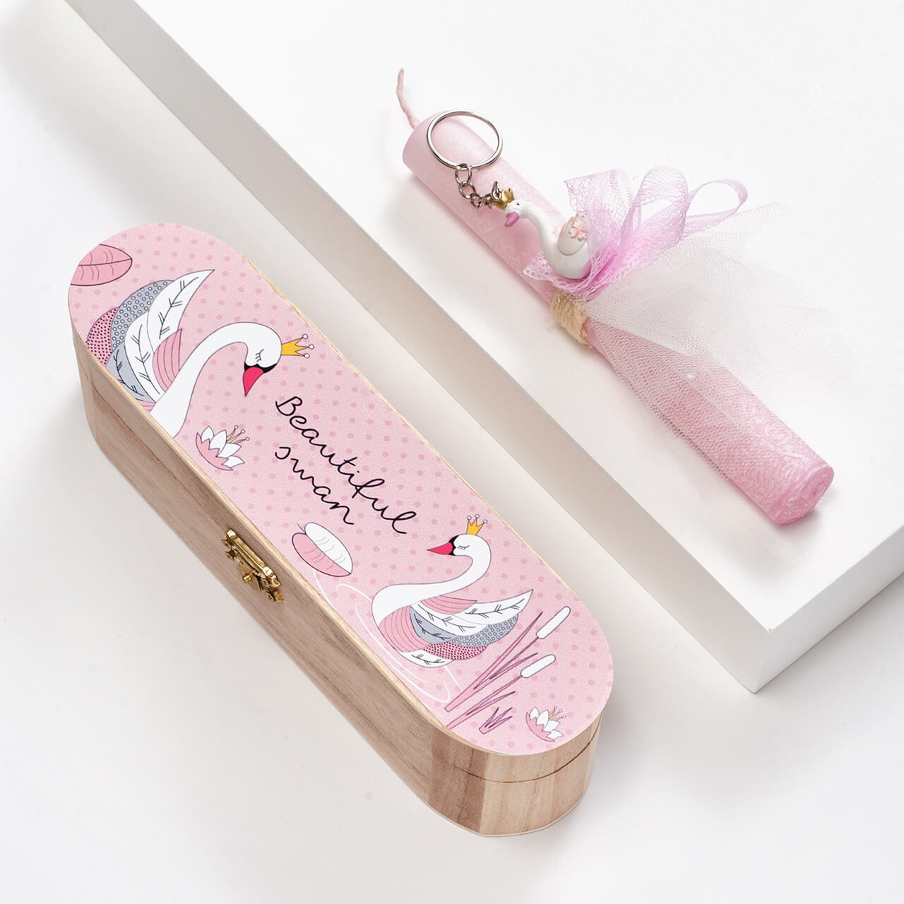 Πασχαλινή λαμπάδα μπρελόκ κύκνος με ξύλινη κασετίνα
