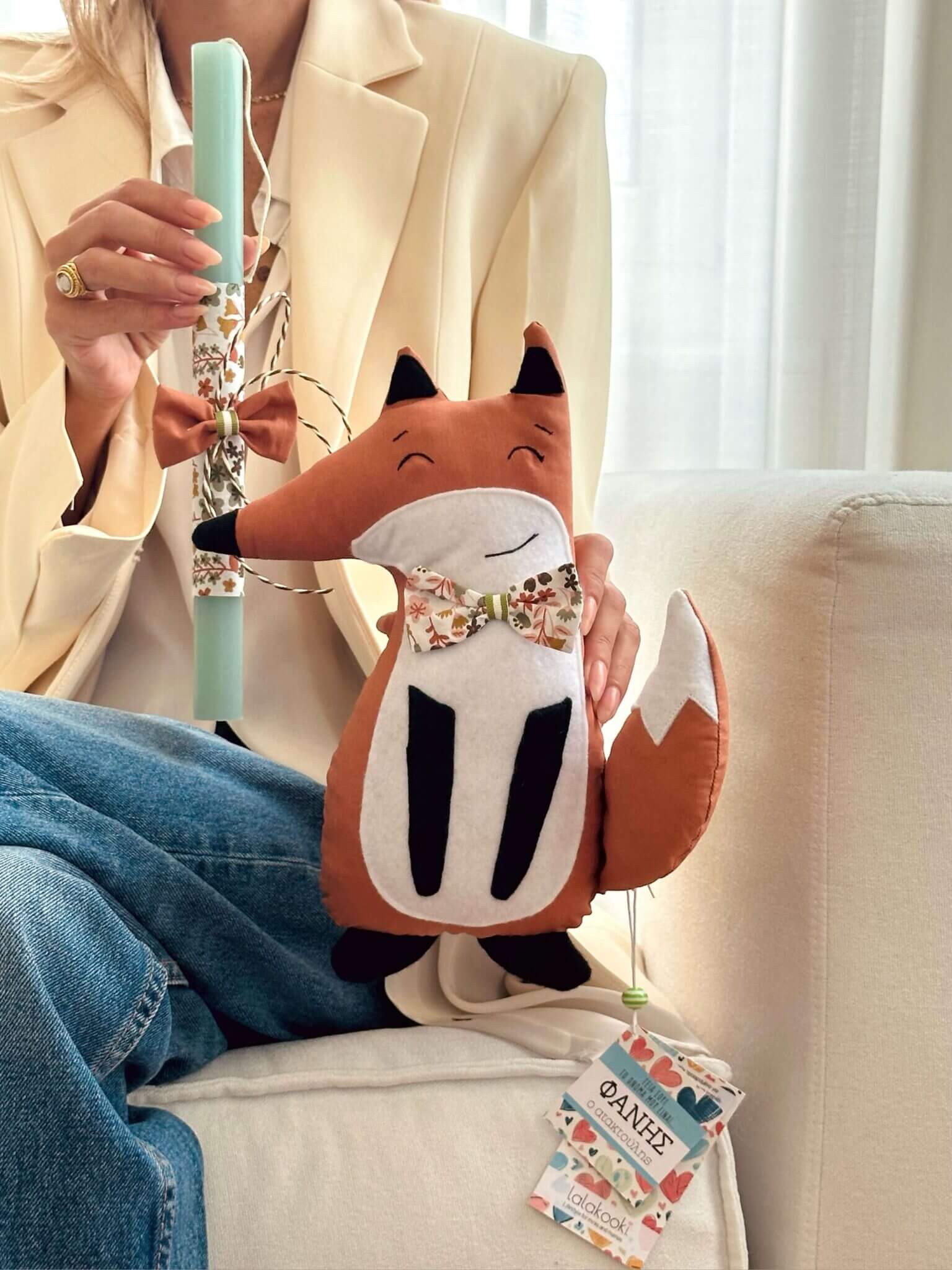 Για το φετινό Πάσχα επιλέξτε για δώρο μια όμορφη πασχαλινή λαμπάδα με χειροποίητη υφασμάτινη αλεπουδίτσα ραμμένη με βαμβακερά υφάσματα. Μια επιλογή που δεν θα περάσει απαρατήρητη απο το μικρό σας βαφτιστήρι! Η πασχαλινή λαμπάδα, με αρωματικό κερί, θα φωτίσει τις πιο ξεχωριστές του στιγμές ενώ η υφασμάτινη αλεπουδίτσα θα γίνει ένα απο τα αγαπημένα του παιχνίδια.