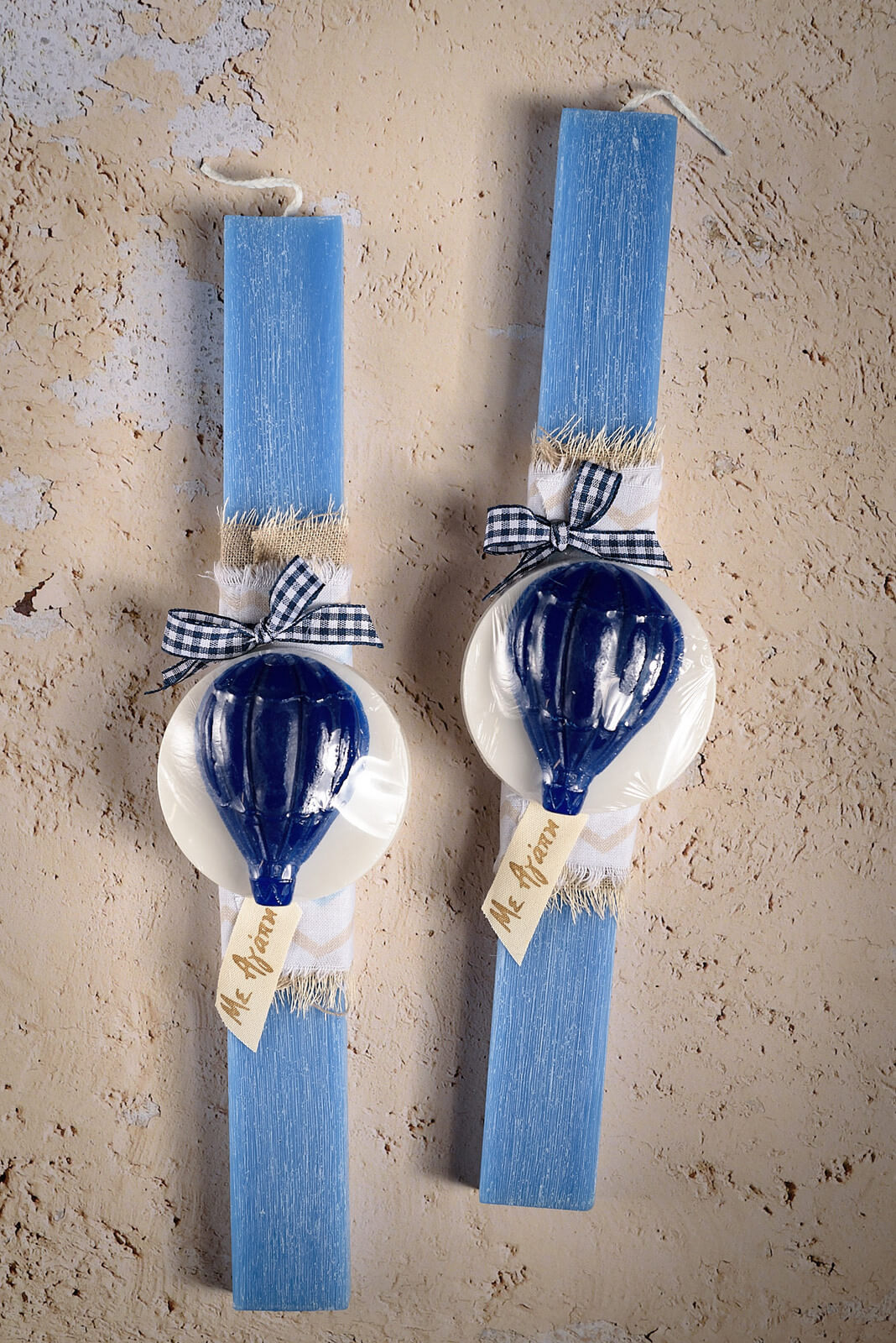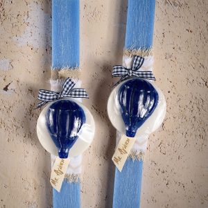 Χειροποίητη πασχαλινή λαμπάδα με αρωματικό σαπουνάκι σε σχήμα αερόστατου.