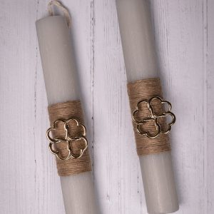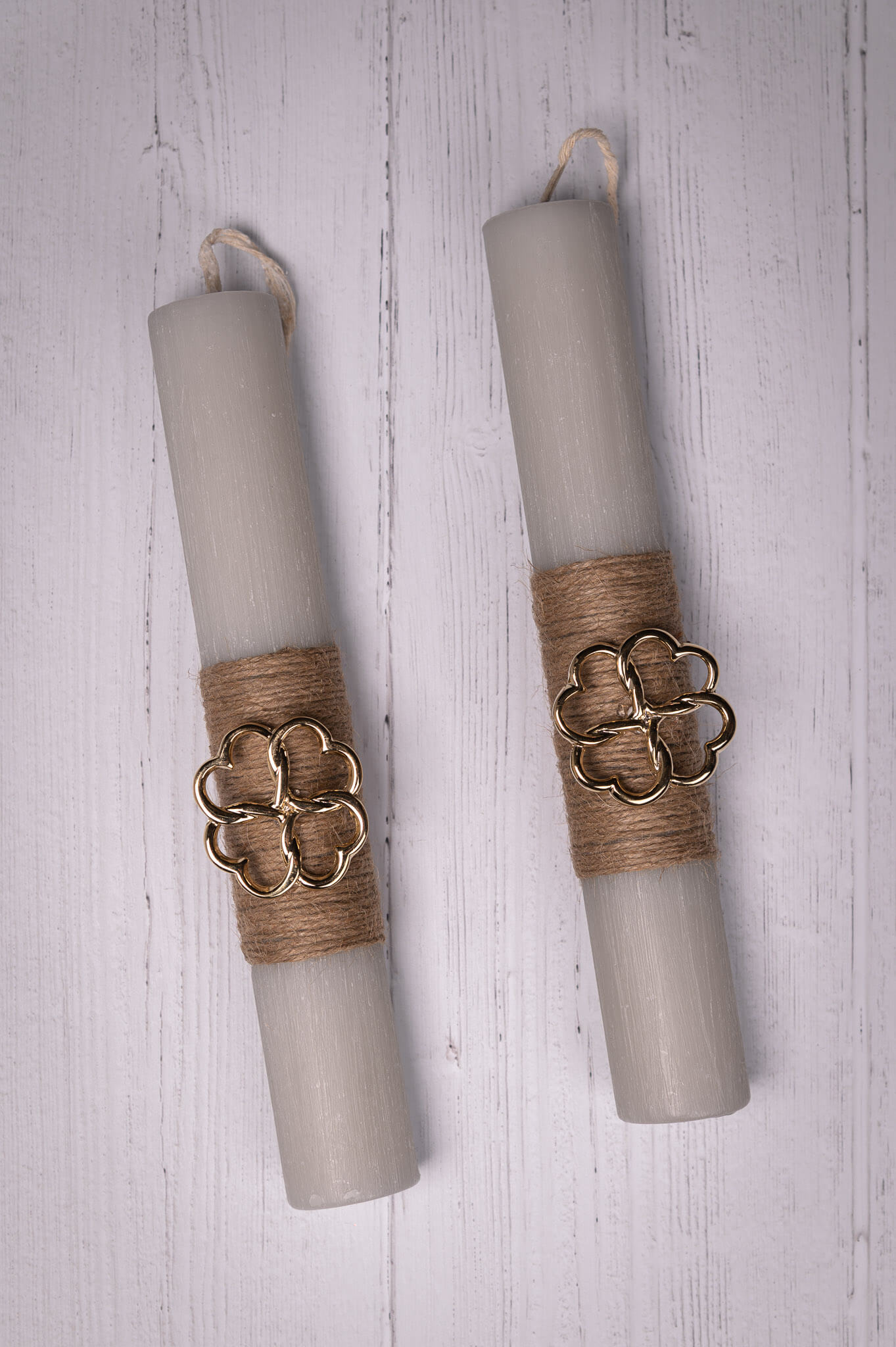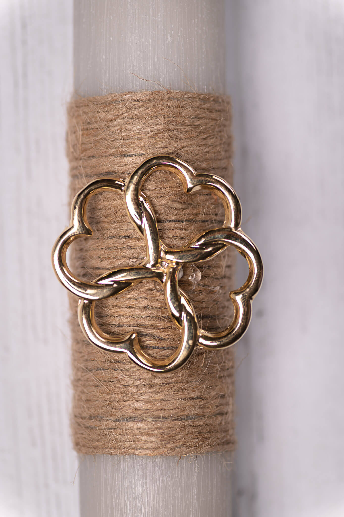 Χειροποίητη πασχαλινή λαμπάδα με μεταλλικό διακοσμητικό τριφύλλι & αρωματικό κερί.
