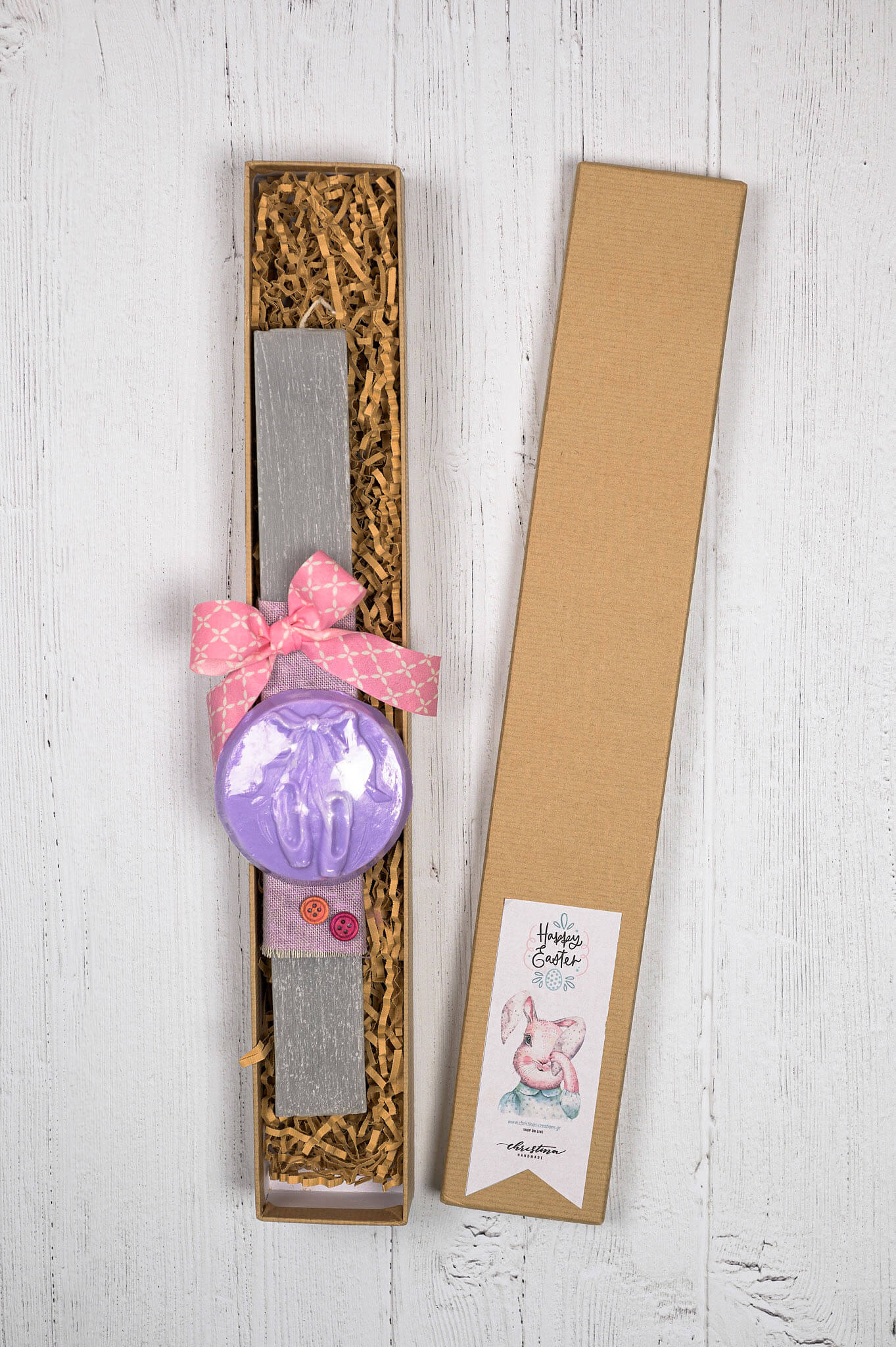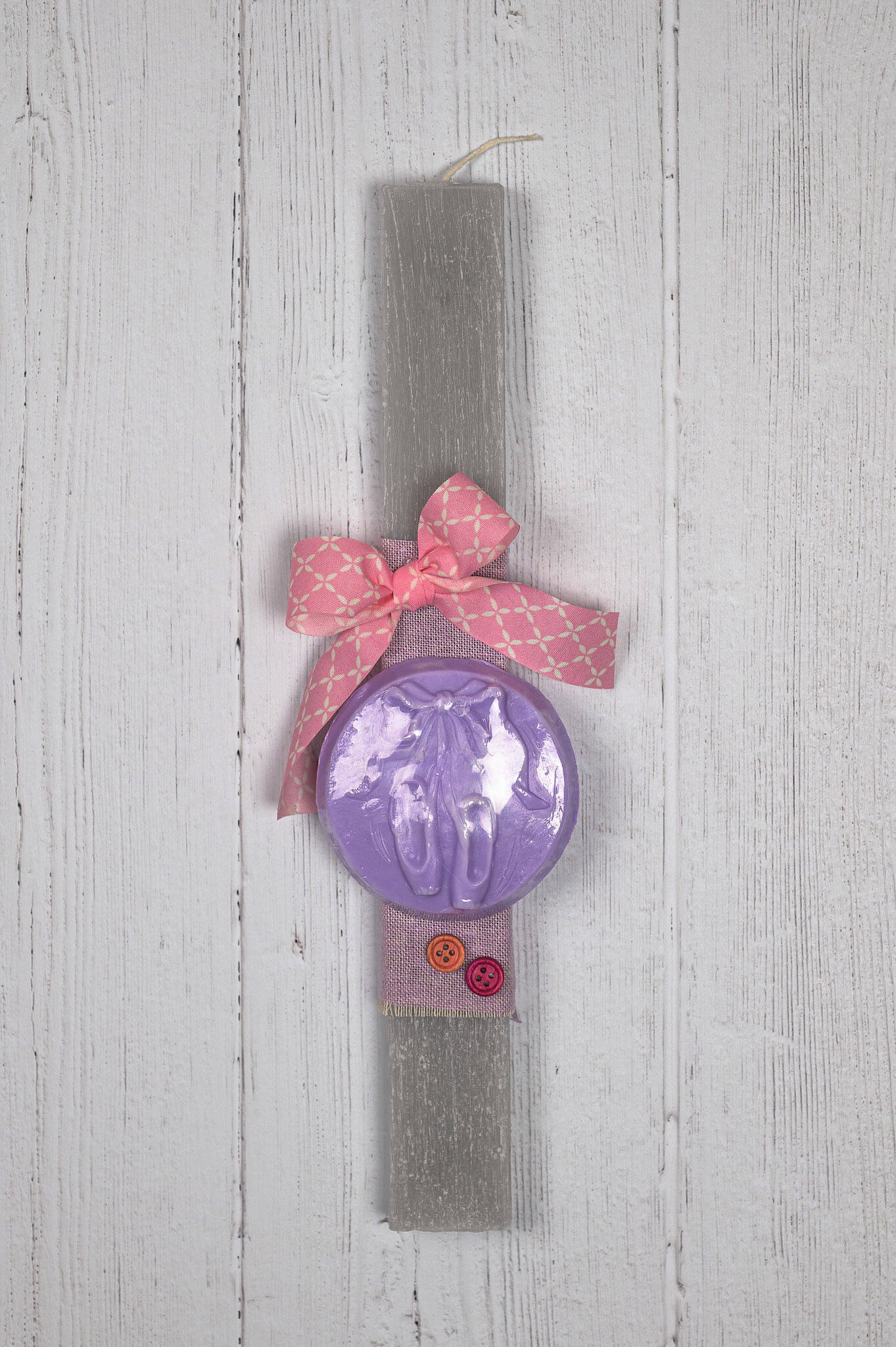 Χειροποίητη πασχαλινή λαμπάδα με αρωματικό σαπούνι σε σχήμα πουέντ.