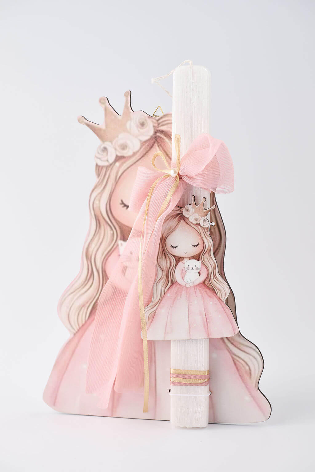 Πασχαλινή λαμπάδα με πριγκίπισσα & ξύλινο διακοσμητικό τοίχου