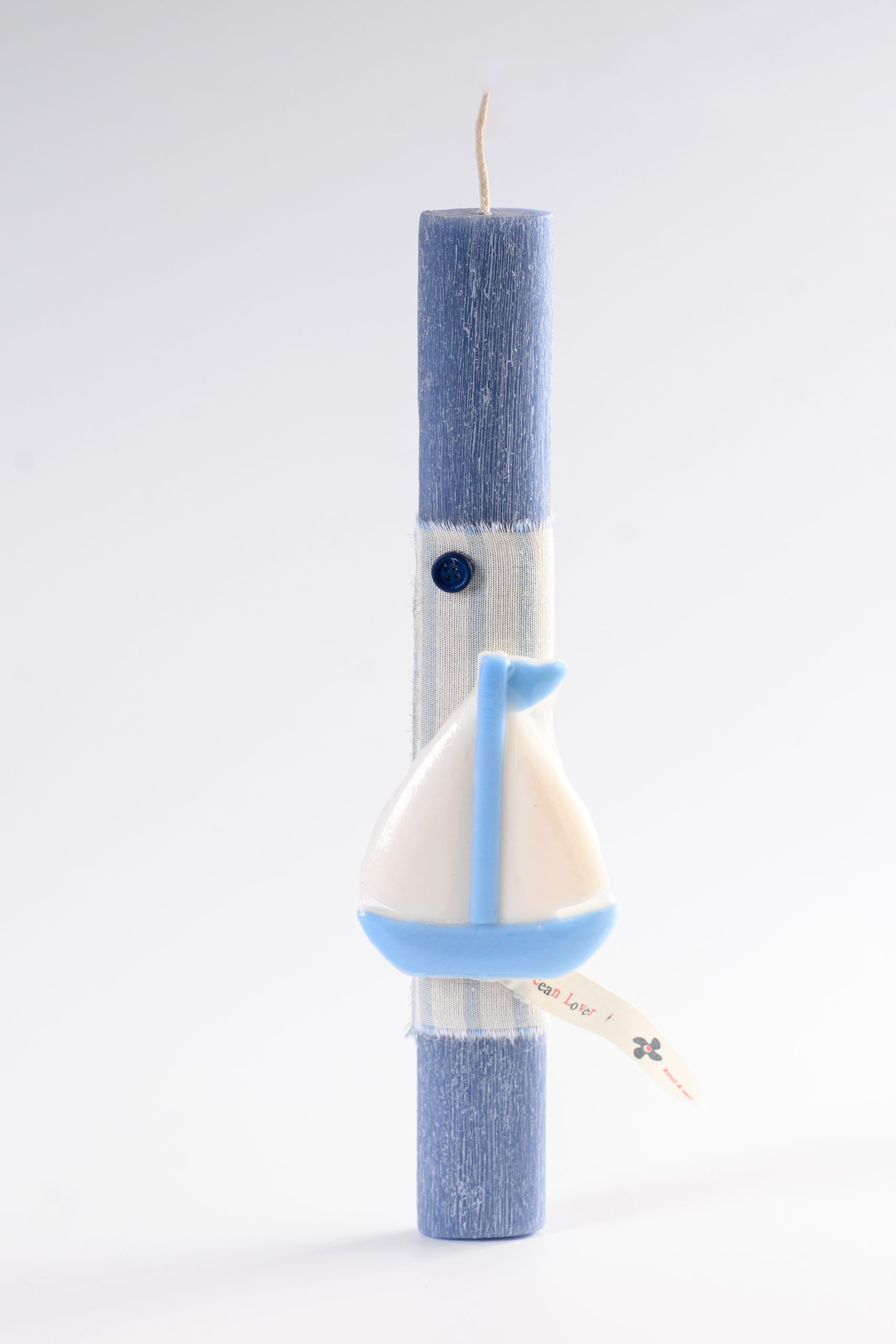 Χειροποίητη πασχαλινή λαμπάδα με αρωματικό κερί & αρωματικό σαπούνι σε σχήμα καραβάκι.