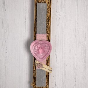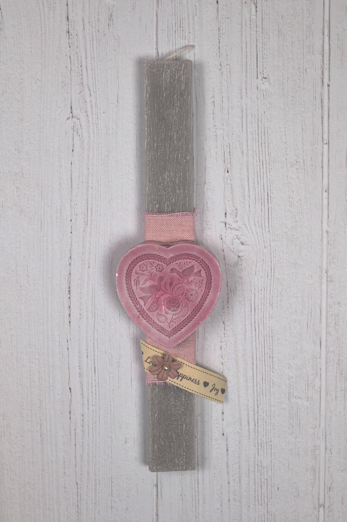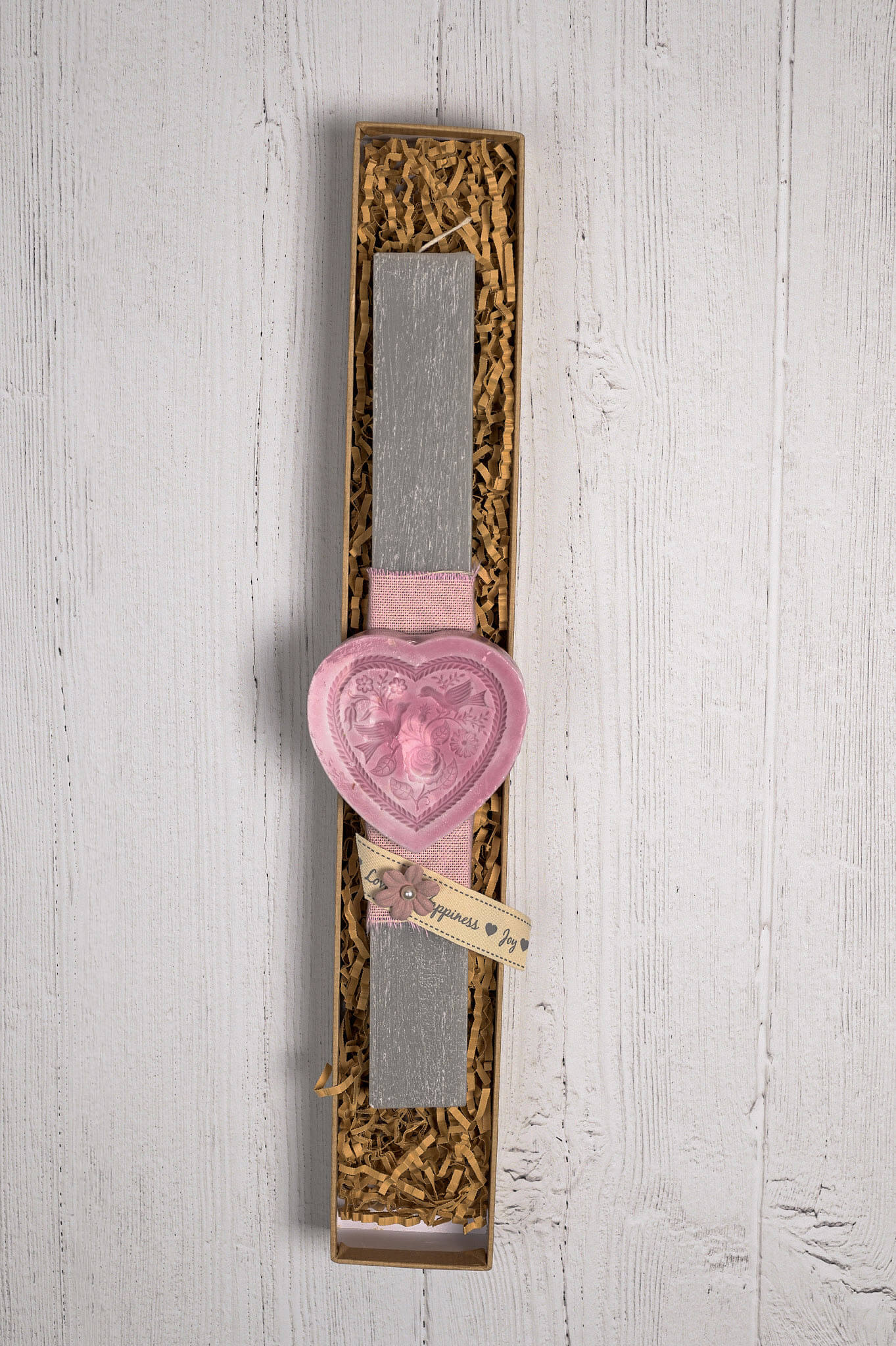 Χειροποίητη πασχαλινή λαμπάδα με αρωματικό σαπούνι σε σχήμα καρδιά.