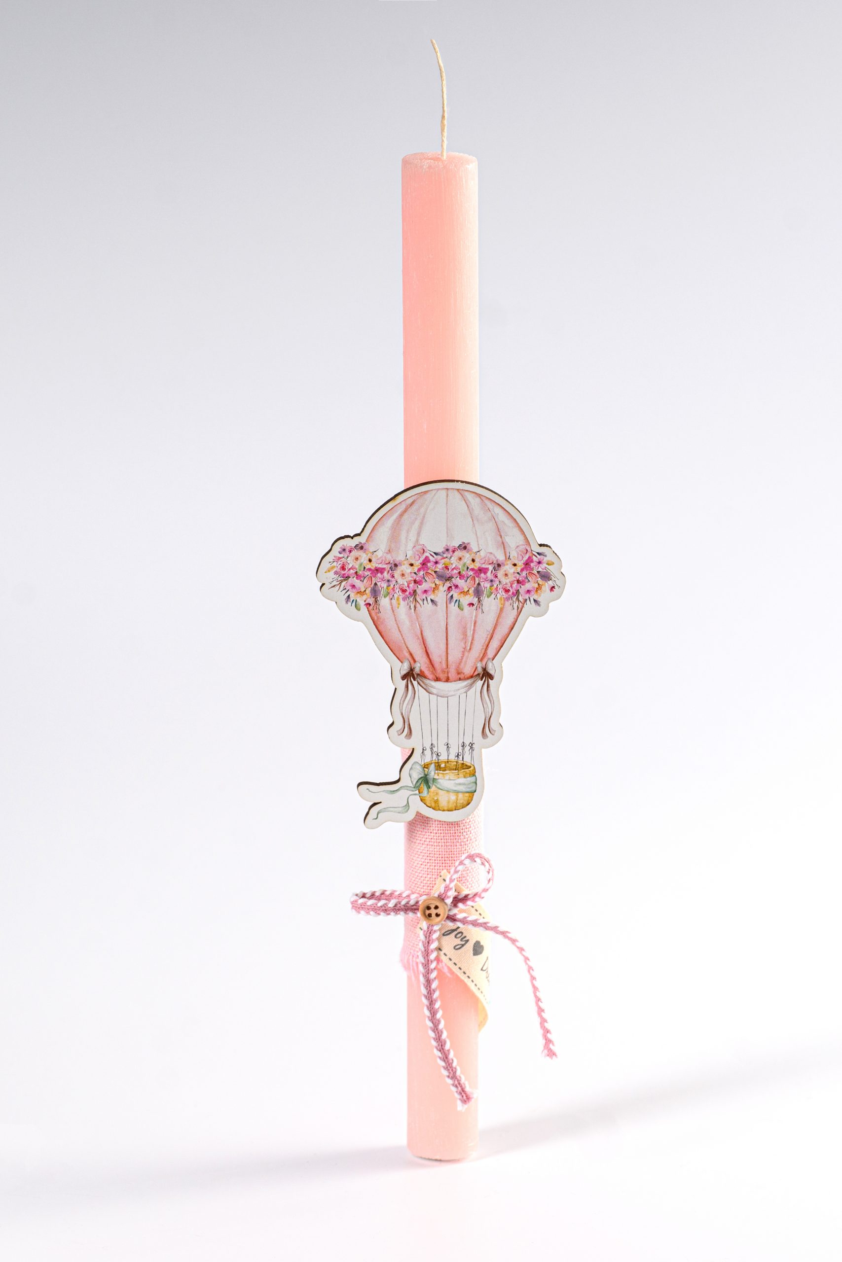 Χειροποίητη πασχαλινή λαμπάδα με αρωματικό κερί & ξύλινο αερόστατο.