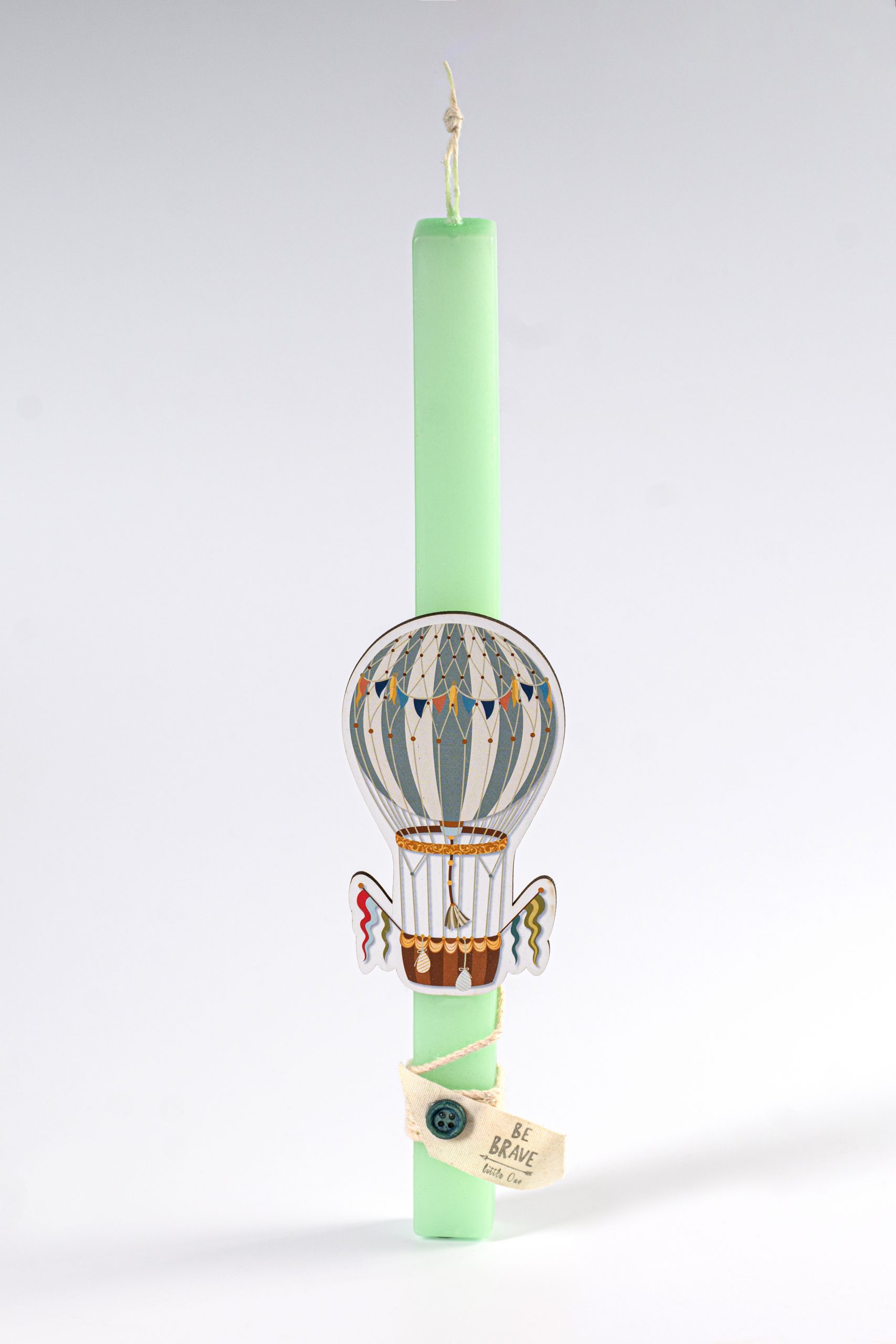 Χειροποίητη πασχαλινή λαμπάδα με αρωματικό κερί & ξύλινο αερόστατο.