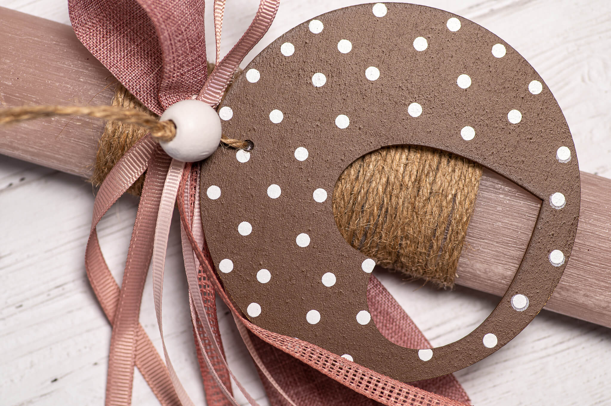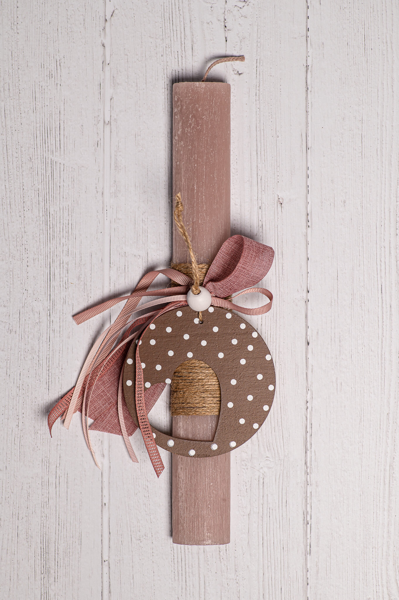 Χειροποίητη πασχαλινή λαμπάδα με ξύλινο διακοσμητικό καρδιά & αρωματικό κερί.