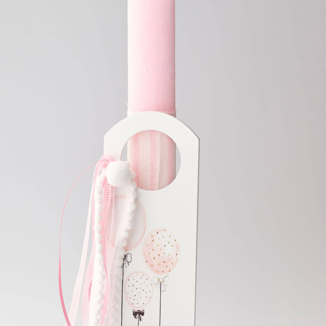 Για το φετινό Πάσχα επιλέξτε μια ιδιαίτερη χειροποίητη πασχαλινή λαμπάδα με ξύλινο διακοσμητικό πόρτας! Με αρωματικό κερί σε ροζ ανοιχτή απόχρωση η πασχαλινή λαμπάδα θα φωτίσει τις πιο ξεχωριστές σας στιγμές ενω το ξύλινο διακοσμητικό θα διακοσμήσει το χώρο σας. Ιδανικό για δώρο ή για προσωπική χρήση.