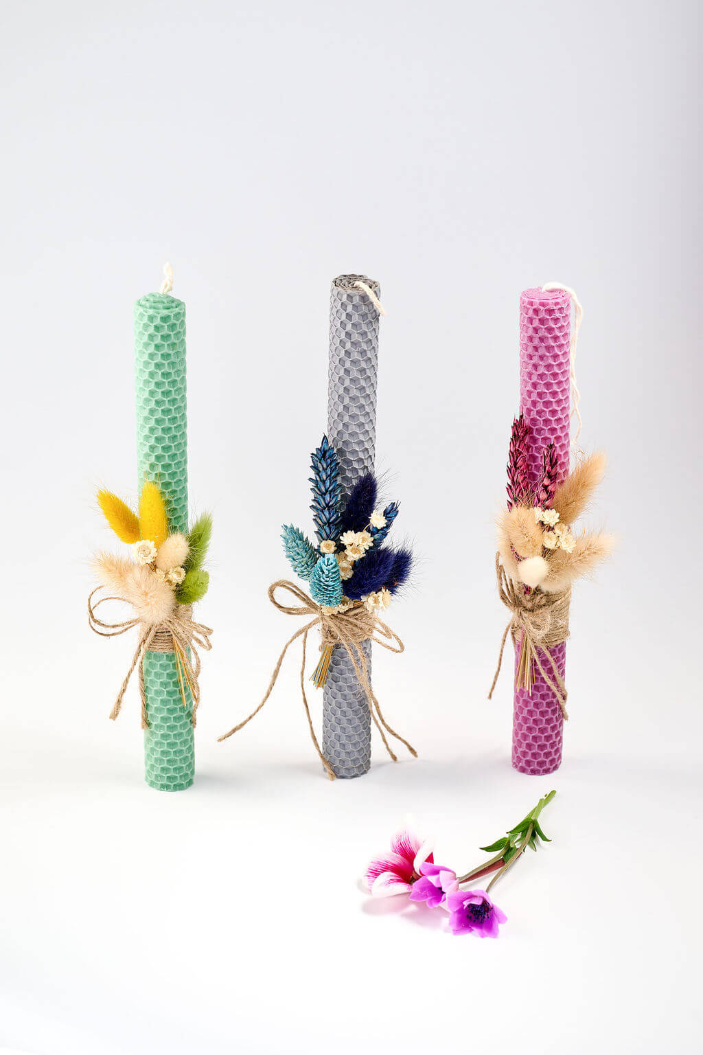 Για το φετινό Πάσχα επιλέξτε για δώρο ή για εσάς τους ίδιους μια χειροποίητη πασχαλινή λαμπάδα απο αγνό κερί μέλισσας σε ανοιχτό βεραμάν χρώμα διακοσμημένη με αποξηραμένα λουλούδια. Μια επιλογή που δεν θα περάσει απαρατήρητη!