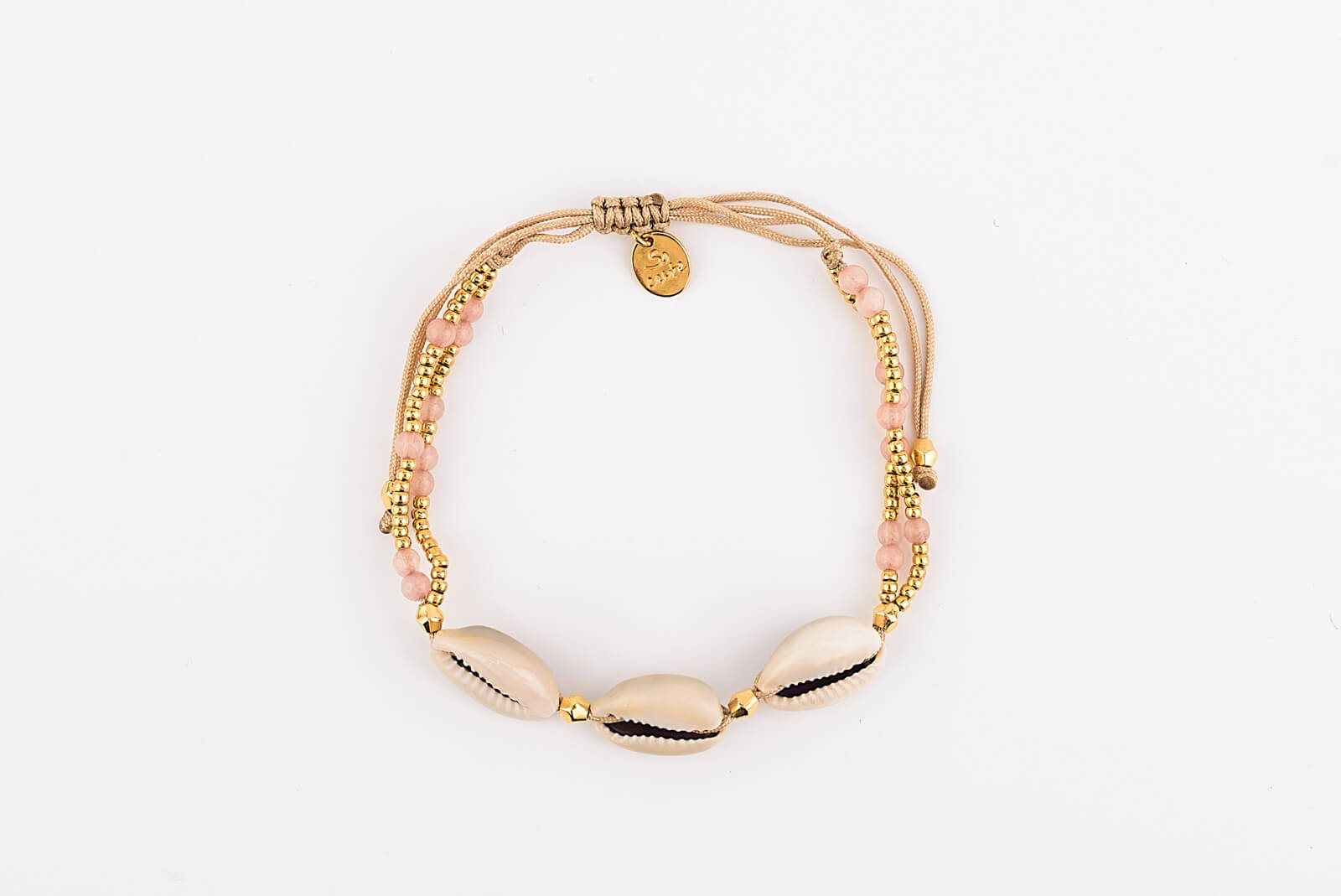 Βραχιόλι ποδιού με φυσικά κοχύλια και πέτρες απο αχάτη