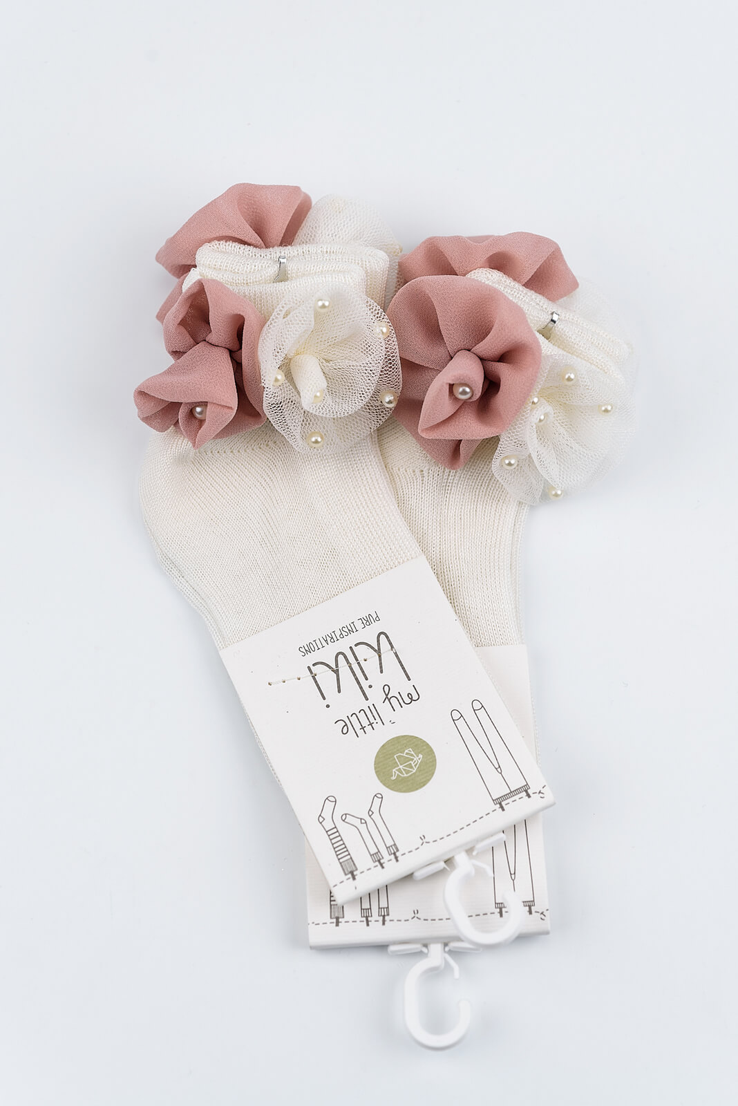 Βρεφικά καλτσάκια με διακοσμητικό λουλούδι απο οργάτζα και τούλι στο πλάι απο τη My little kiki.